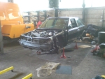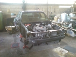 Ein gutes Jahr später war dann eine neue Halle gefunden und die Umzieherei begann erneut. Doch dieses Mal mit einem komplett zerlegten Auto. Bevor der Polo jedoch in die neue Halle kam, nahm er einen Umweg und kam endlich zum Lackierer. Martin, der Lackierer, hat eine schöne Arbeit geleistet und so wird der Wagen bald in neuem Glanz erstrahlen.