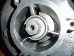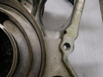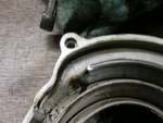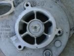 Eine weitere Optimierungsmöglichkeit bietet sich im Bereich der Luftaustrittsöffnung. Die insgesamt sechs Stege um das Hauptwellenlagergehäuse weisen im werksseitigen Zustand eine recht klobige Form und Gussgrate auf. Gegen eine leichte Bearbeitung spricht grundsätzlich nichts. Eine starke Bearbeitung, bei der viel Material von den Stegen entfernt wird - oder gar ganze Stege entfernt werden, können die Widerstandskraft der Hauptwellenlagerung gegenüber Schwingungen schwächen.