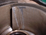 Dieser recht häufig auftretende Schaden kann unterschiedliche Ursachen haben. Wenn Dichtleisten mit falschen Abmessungen verwendet werden, kann es durch auftretende Scherkräfte zu Brüchen in der empfindlichen Nut kommen. Da an dieser Stelle die Wandungen sehr dünn sind, ist die Nut auch die anfälligste Stelle im gesamten G-Lader. Wenn Fremdkörper eintreten oder Dichtleisten durch Verschleiß aus den Nuten rutschen, beschädigen diese häufig zuerst die Nutenwände.