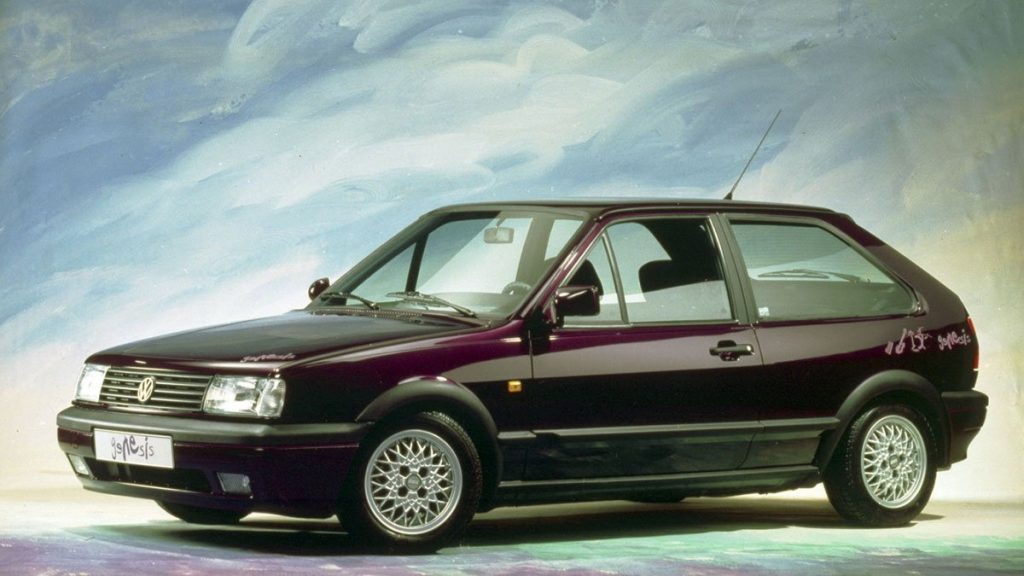 Auf dem Automobilsalon in Genf hat im März 1992 der Polo Coupé Genesis seine Premiere. Es gibt ihn in nur einer Farbe: „Violett Touch Perleffekt“. Ab Mai kann man ihn kaufen. Mit Extras für die Ohren der Fans: Denn für gute Unterhaltung im Auto sorgt die Soundanlage „Genesis“ mit Stereo-Cassettenradio „gamma“, zwei Drei-Wege-Lautsprecher und Zwei-Wege-Lautsprecher hinten mit 8 x 20 Watt. Passend dazu sind die Stoff-Sitzbezüge im Design „Sound“ und der „Genesis“-Schriftzug in der Kopfstütze. Auch der Schlüsselanhänger trägt den Schriftzug „Genesis“ neben dem VW-Zeichen.