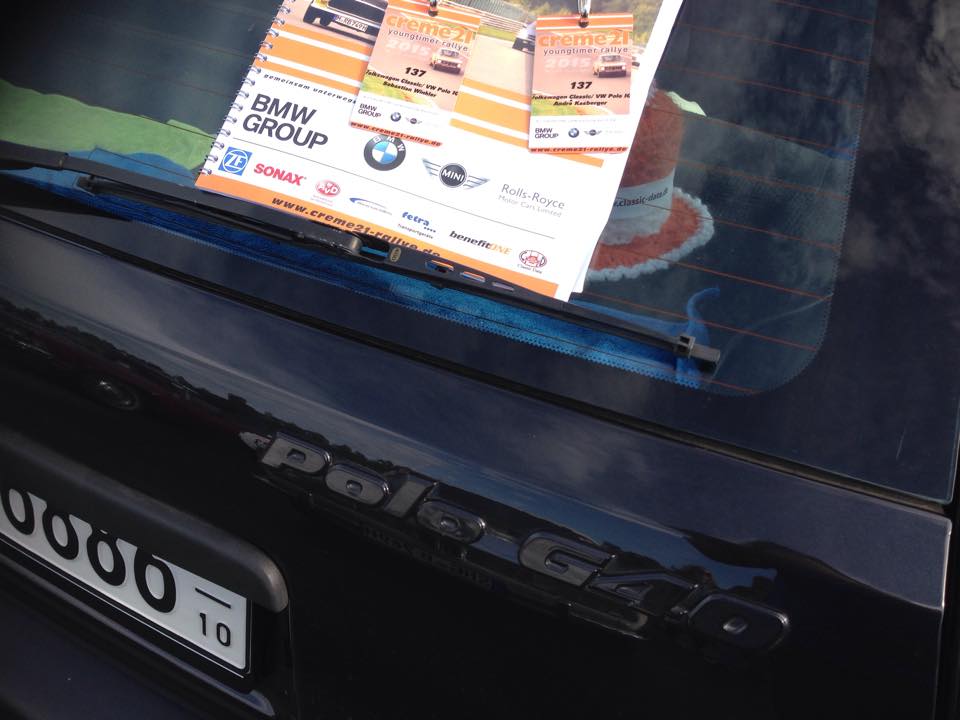 Für die Unterstützung im Jubiläumsjahr des VW Polo sind Mitglieder der VW Polo IG Deutschland von Volkswagen Classic zur Teilnahme an der Creme 21 Youngtimerrallye eingeladen worden. André und Basti starteten dabei – wie Volkswagen Classic selber – auf einem Polo G40. Angefangen am Hockenheimring ging es 5 Tage später auf dem BMW-Gelände in Leipzig ins Ziel. Die insgesamt 5 Polo bzw. Derby des Starterfeldes haben dabei geschnurrt wie ein Uhrwerk.