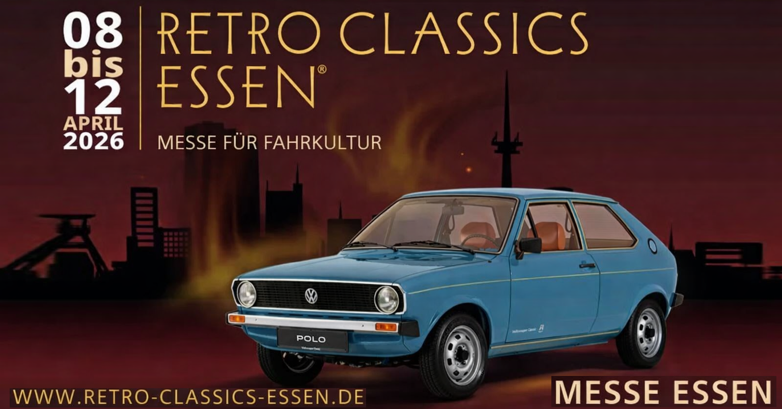 Besucht uns auf der RETRO CLASSICS, die erstmalig in der Messe Essen stattfindet! Ihr findet uns vom 8.bis um12. April 2026 in Halle 5, Stand B30 und wir werden -wie immer- tolle Exponate aus der Historie des VW Polo mitbringen.