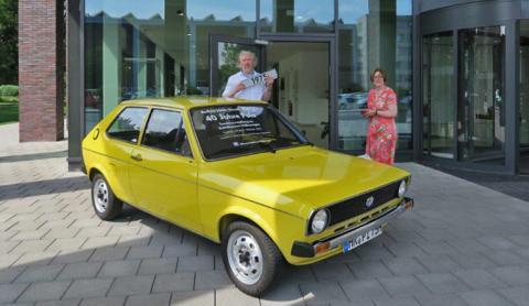 Volkswagen feiert den 40. Geburtstag des Polo. Um auf die aktuelle Sonderausstellung im AutoMuseum aufmerksam zu machen, soll in den nächsten drei Wochen dieser originallackierte, gelbe Polo vor dem Verwaltungshochhaus im Wolfsburger Volkswagen Werk an den Käfer-Nachfolger erinnern. Der preisgünstige, karg ausgestattete Polo stammt aus dem Jahr 1975 und wurde über die VW Polo IG Deutschland e.V. bereitgestellt.
